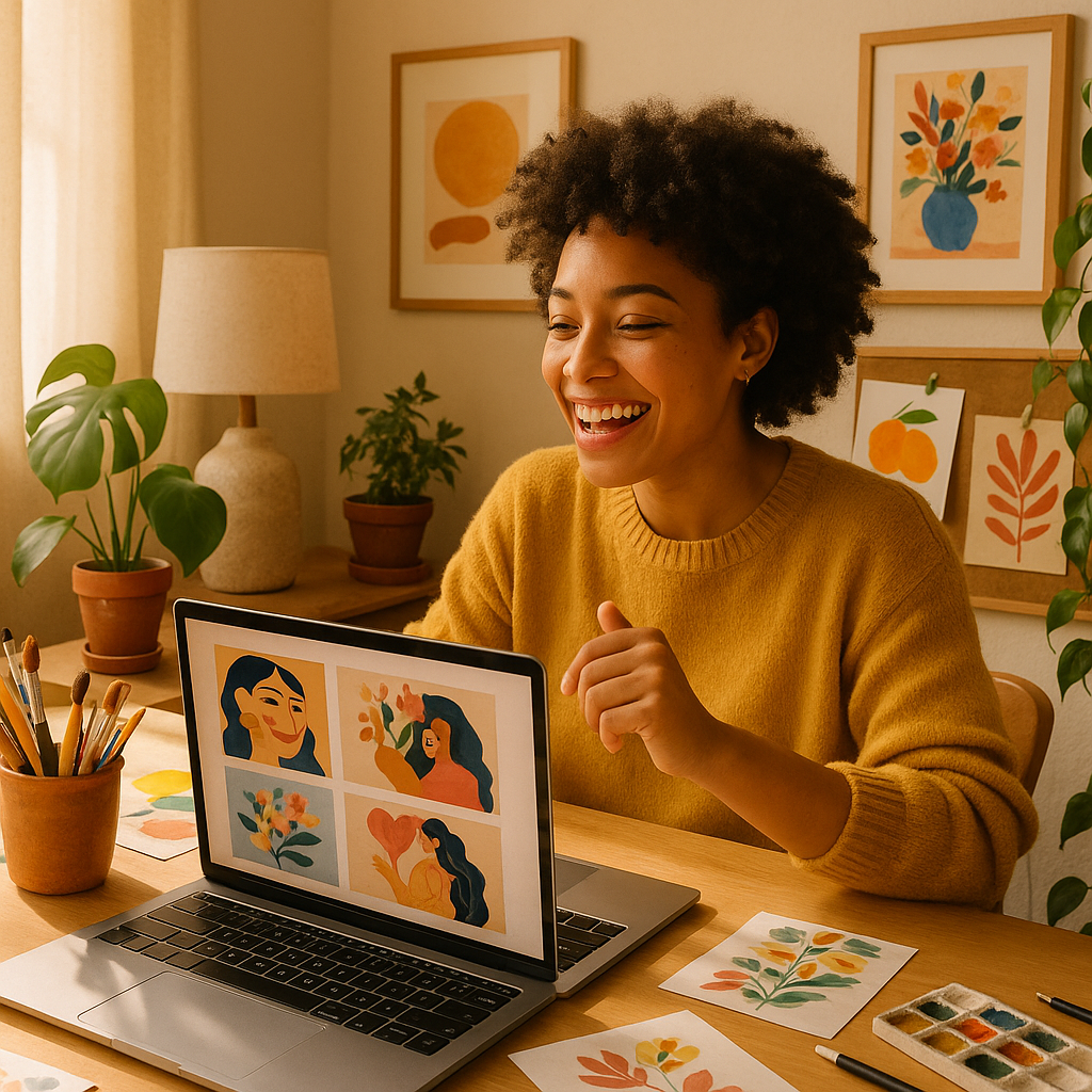 The tradeoff with AI is that you handle the final text overlay — most people add wording in Canva (free) after downloading the image, which takes about five minutes. Everything else: design, illustration, color matching, motif placement — the AI handles completely.