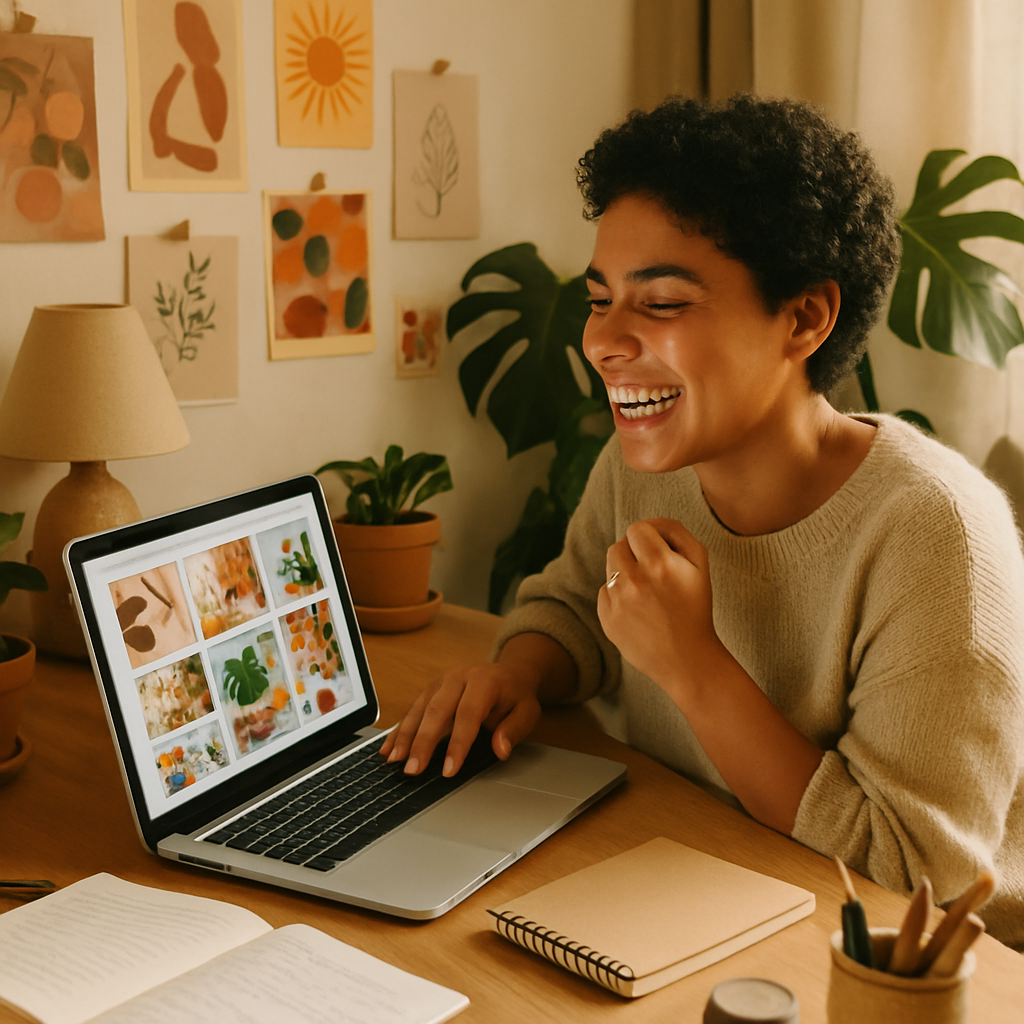 Notice the pattern: setting + lighting + specific details + emotional tone. Run a few variations — change the time of day, swap "city skyline" for "mountain view," adjust the lighting from warm to bright and airy — and you'll have a content library in under 10 minutes.