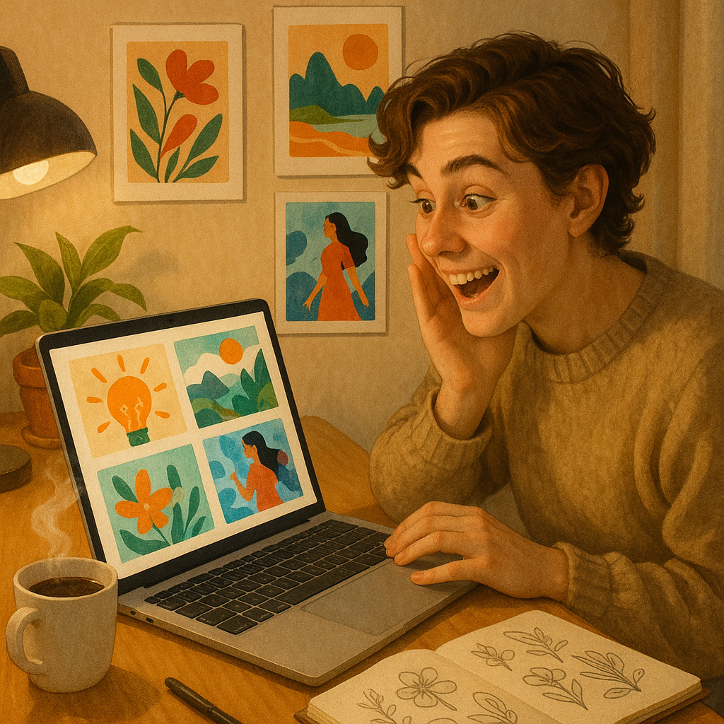 That single prompt covers orientation, subject, lighting, color, style, and composition. It gives you something ready for your screen.